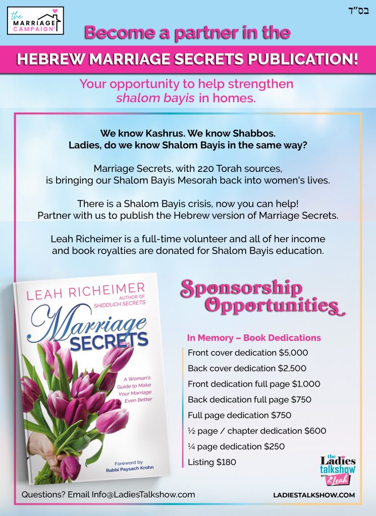 Become a Partner in the Hebrew Marriage Secrets Publication!
